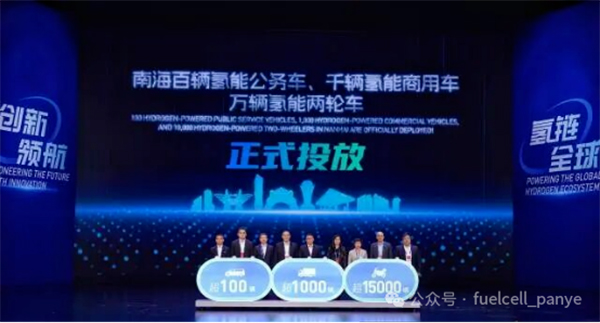 ↑南海百辆氢能公务车、千辆氢能商务车、万辆氢能两轮车正式投放仪式